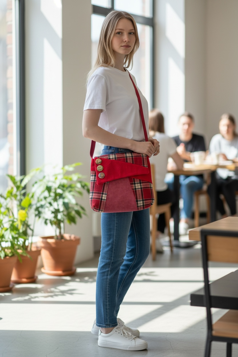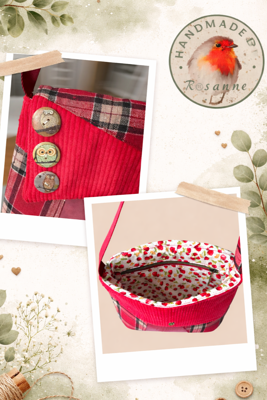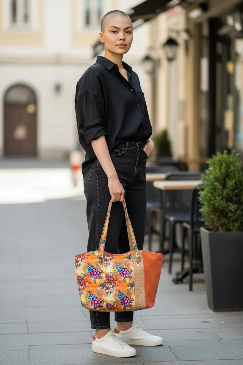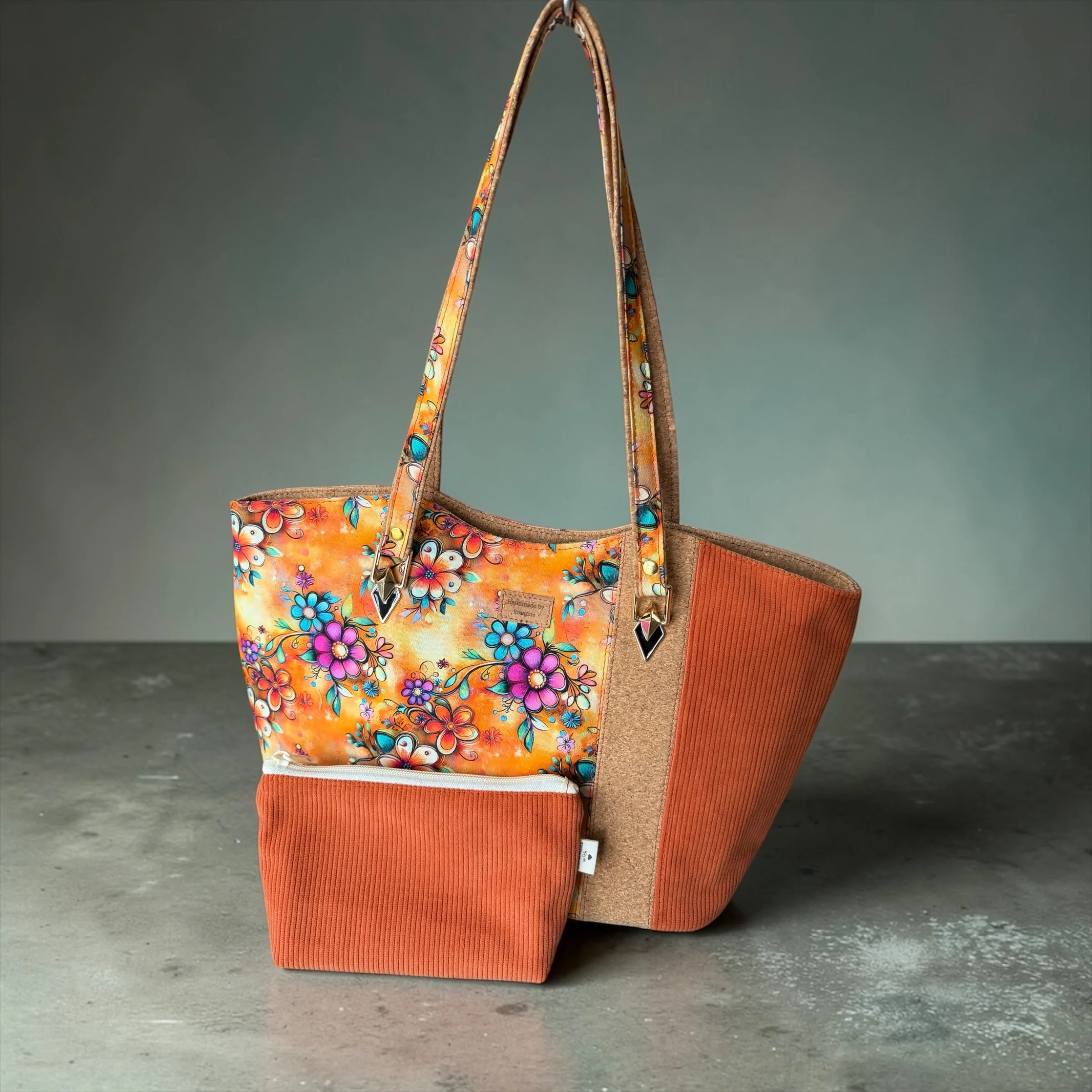Floral Canvas and Cork handbag with a Corduroy accent and matching Cord Pouch