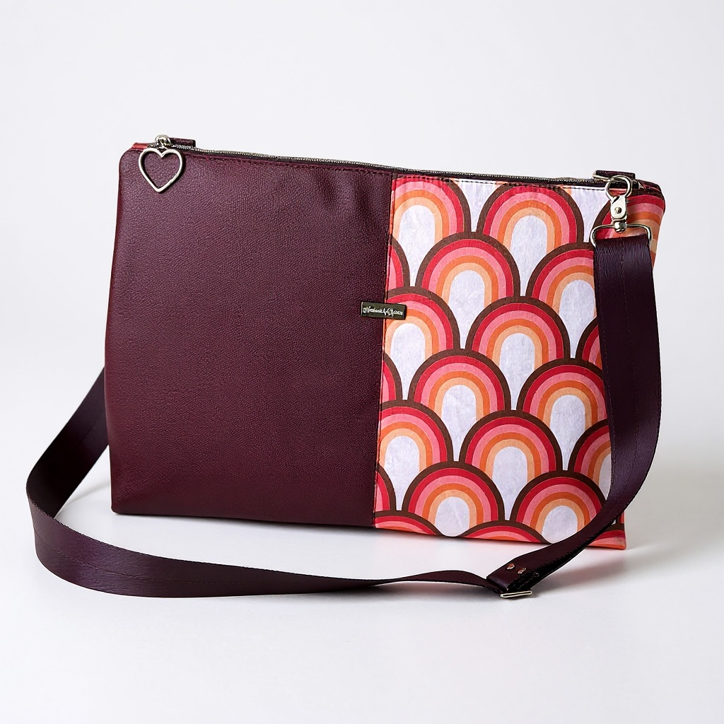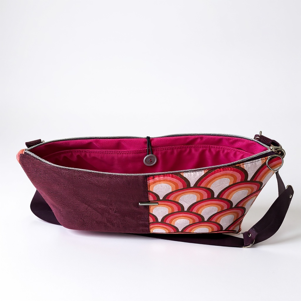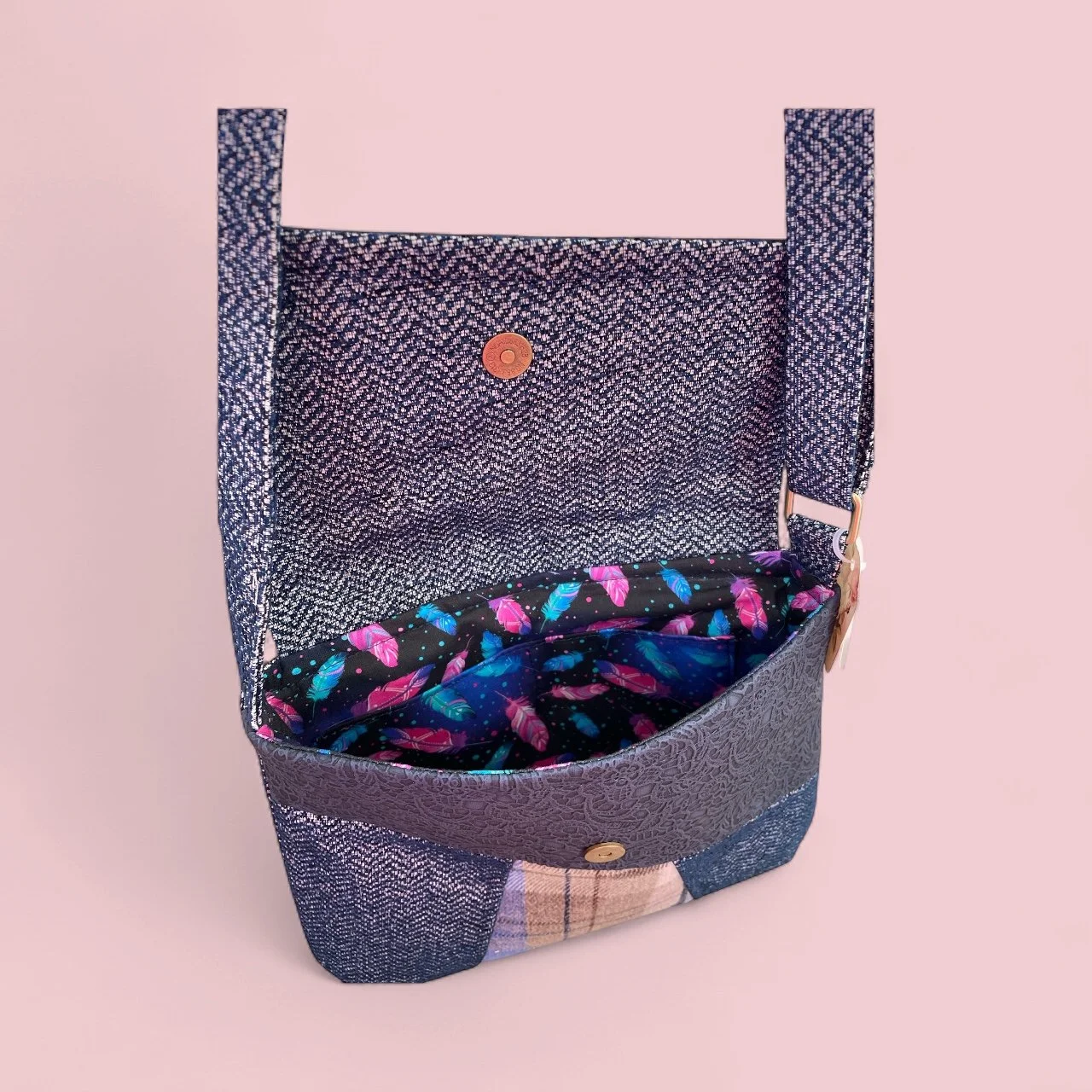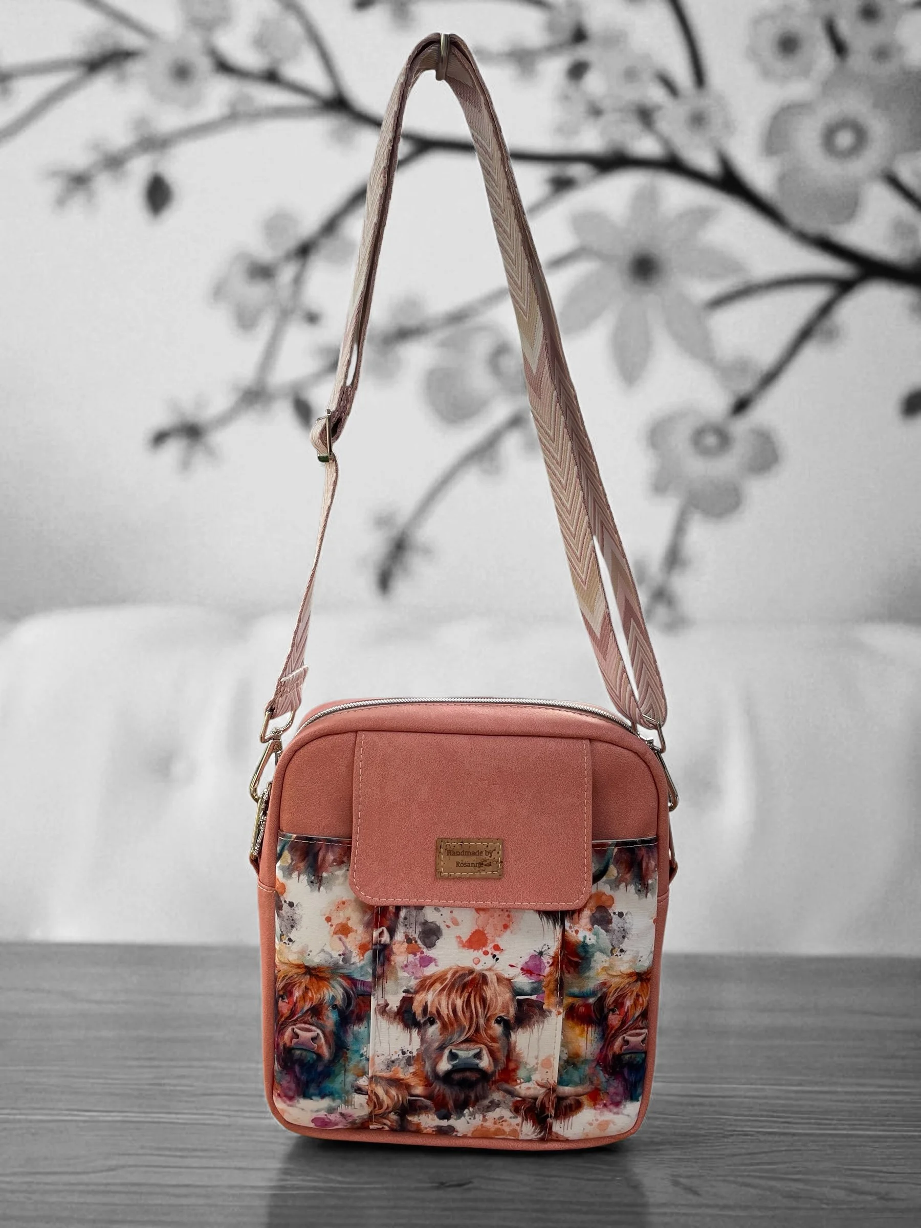 Zip top every day tote bag with cross body strap. Made with a tapestry style fabric.