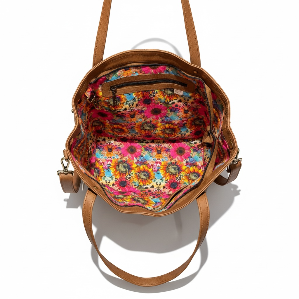 A beautiful handbag with a slouchy finish. This handbag is large enough to carry everything you need. Finished in a soft brown faux leather